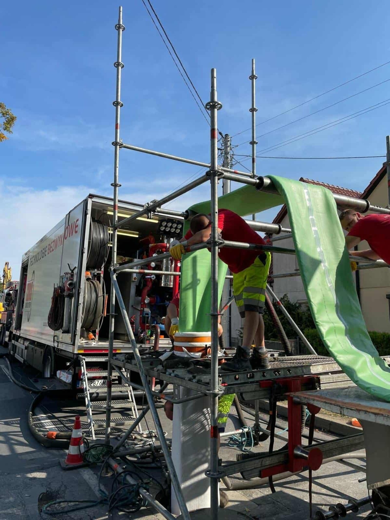 Aby umożliwić bezpieczne prowadzenie prac montażowych, konieczne było codzienne przepompowywanie około 1 500 m³ ścieków.