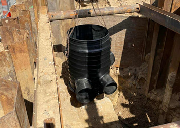 Nową, indywidualnie zaprojektowaną studnię kanalizacyjną wykonała i dostarczyła firma Kaczmarek Malewo spółka komandytowa. W jej miejscu zdemontowano starą studnię i część rur kanalizacyjnych, a następnie zamontowano nową konstrukcję, łącząc ją z dwoma rurociągami o średnicy 500 mm.