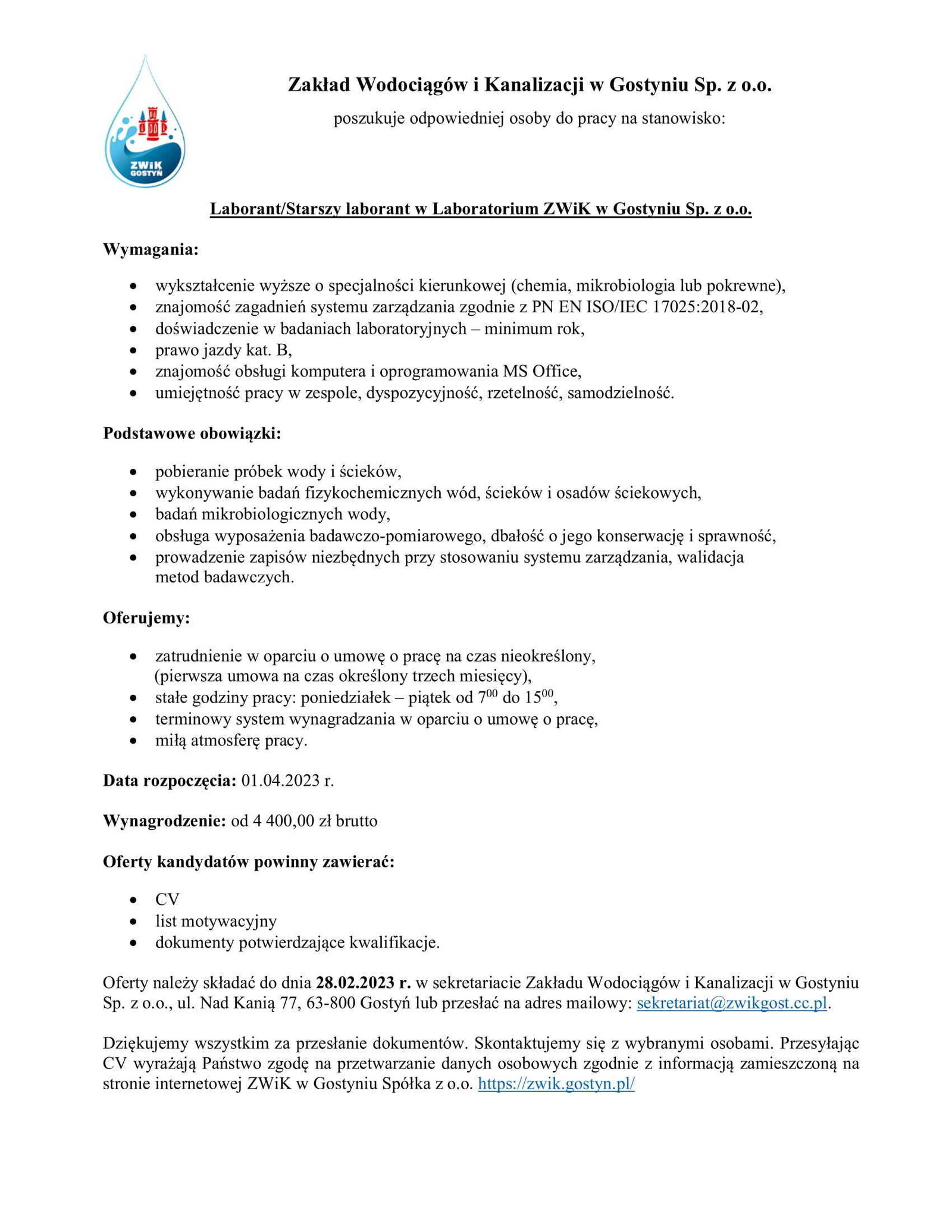 Dodano: 07 lutego 2023 Oferta pracy