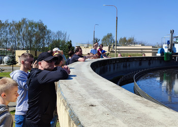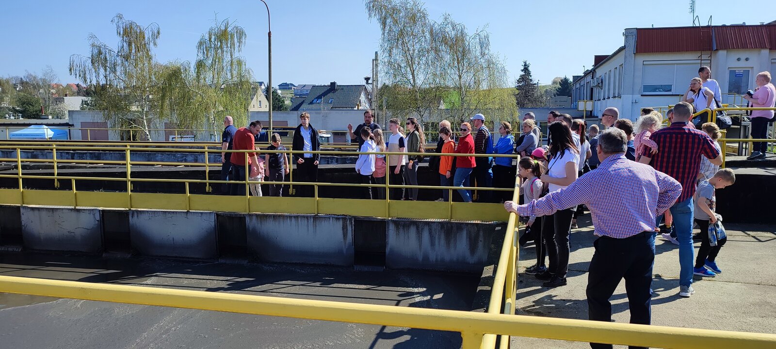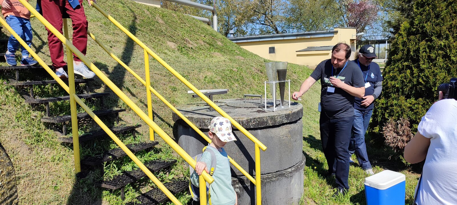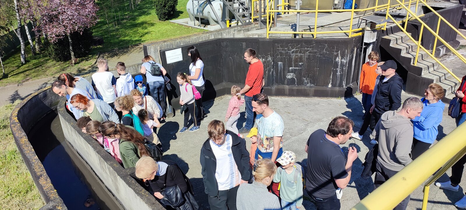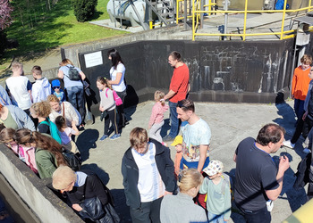Jeżeli chodzi o oczyszczanie wstępne to dzieci wykazały się dużą wiedzą i same opowiedziały, jak należy prawidłowo korzystać z kanalizacji sanitarnej, że nie należy wrzucać do ścieków zanieczyszczeń stałych, aby nie zakłócać działania urządzeń na sieci kanalizacyjnej. Można było zobaczyć miejsca, które na co dzień nie są dostępne dla osób postronnych – m.in. stację dmuchaw dostarczającą tlen niezbędny dla mikroorganizmów osadu czynnego, dzięki którym w reaktorze biologicznym przebiega właściwy proces oczyszczania. Niewątpliwą atrakcją było wspólne oglądanie osadu czynnego pod mikroskopem z identyfikacją organizmów. Uczestnicy obserwowali również proces sedymentacji, dzięki któremu możemy oddzielić oczyszczony ściek od osadu czynnego. Na koniec odbyły się pokazy czyszczenia sieci kanalizacyjnej, zadymiania i kamerowanie kanalizacji, a także zabawy hydrauliczne dla dzieci.