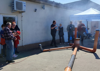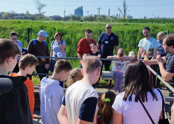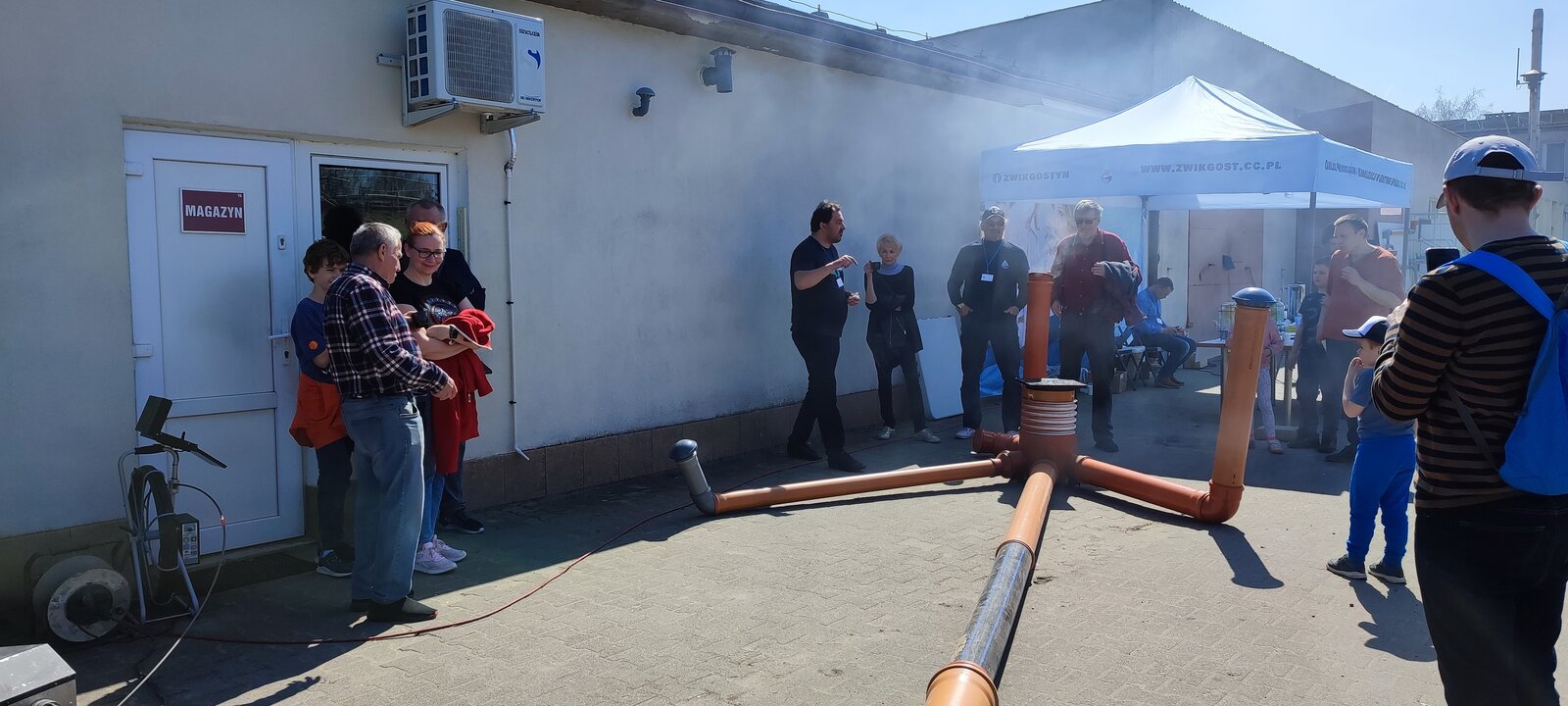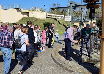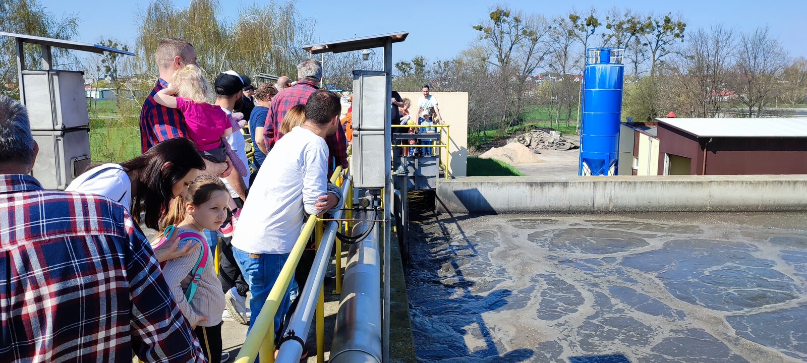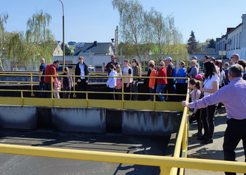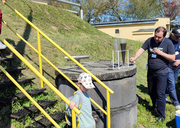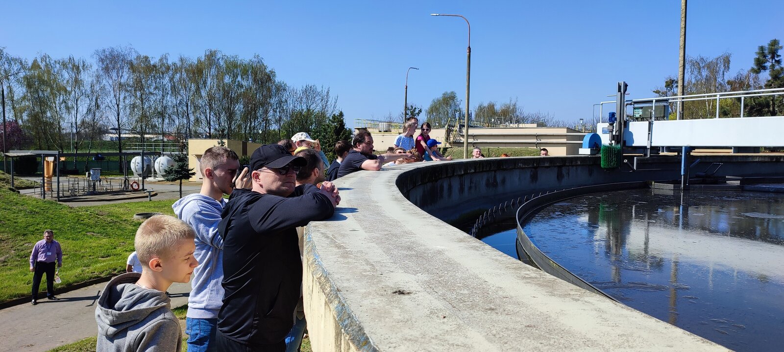 Jeżeli chodzi o oczyszczanie wstępne to dzieci wykazały się dużą wiedzą i same opowiedziały, jak należy prawidłowo korzystać z kanalizacji sanitarnej, że nie należy wrzucać do ścieków zanieczyszczeń stałych, aby nie zakłócać działania urządzeń na sieci kanalizacyjnej. Można było zobaczyć miejsca, które na co dzień nie są dostępne dla osób postronnych – m.in. stację dmuchaw dostarczającą tlen niezbędny dla mikroorganizmów osadu czynnego, dzięki którym w reaktorze biologicznym przebiega właściwy proces oczyszczania. Niewątpliwą atrakcją było wspólne oglądanie osadu czynnego pod mikroskopem z identyfikacją organizmów. Uczestnicy obserwowali również proces sedymentacji, dzięki któremu możemy oddzielić oczyszczony ściek od osadu czynnego. Na koniec odbyły się pokazy czyszczenia sieci kanalizacyjnej, zadymiania i kamerowanie kanalizacji, a także zabawy hydrauliczne dla dzieci.